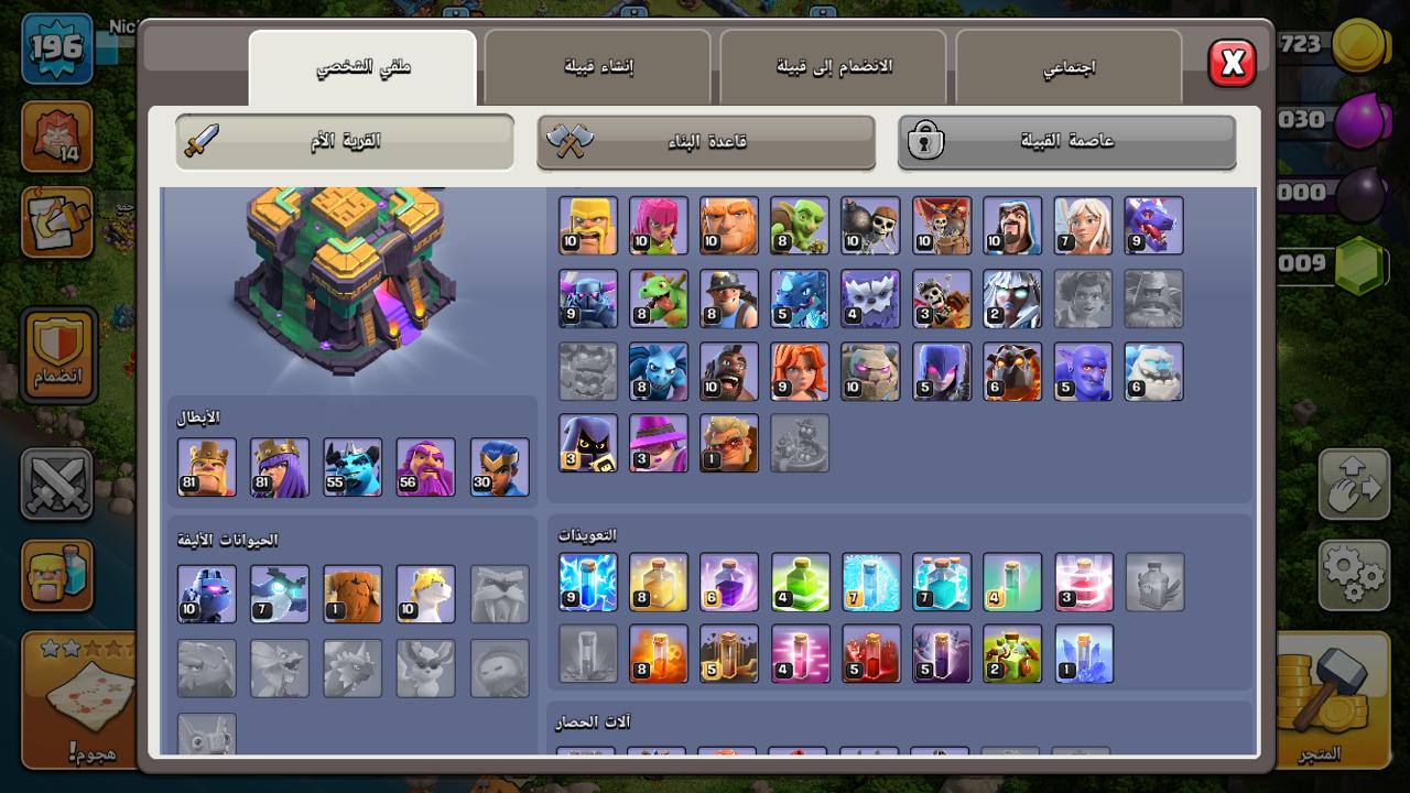 قرية كلاش اوف كلانس جوكر نادرة مناسبه للحروب دفاعات تاون هول ٩ والتاون هول الفعلي ١١ والجيش والملوك...