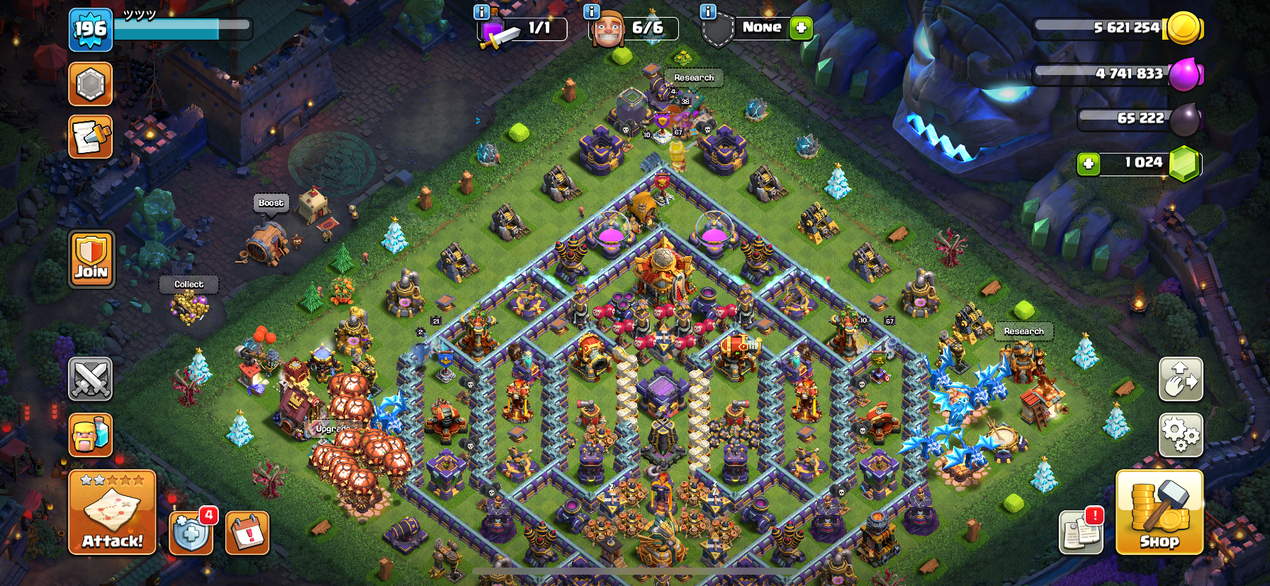 حساب كلاش أف كلانس كامل متكامل ماكس ١٧ إلا بعض الأفخاخ وسكنات فيه ومعدات الملوك في منها كثير ماكس وق...