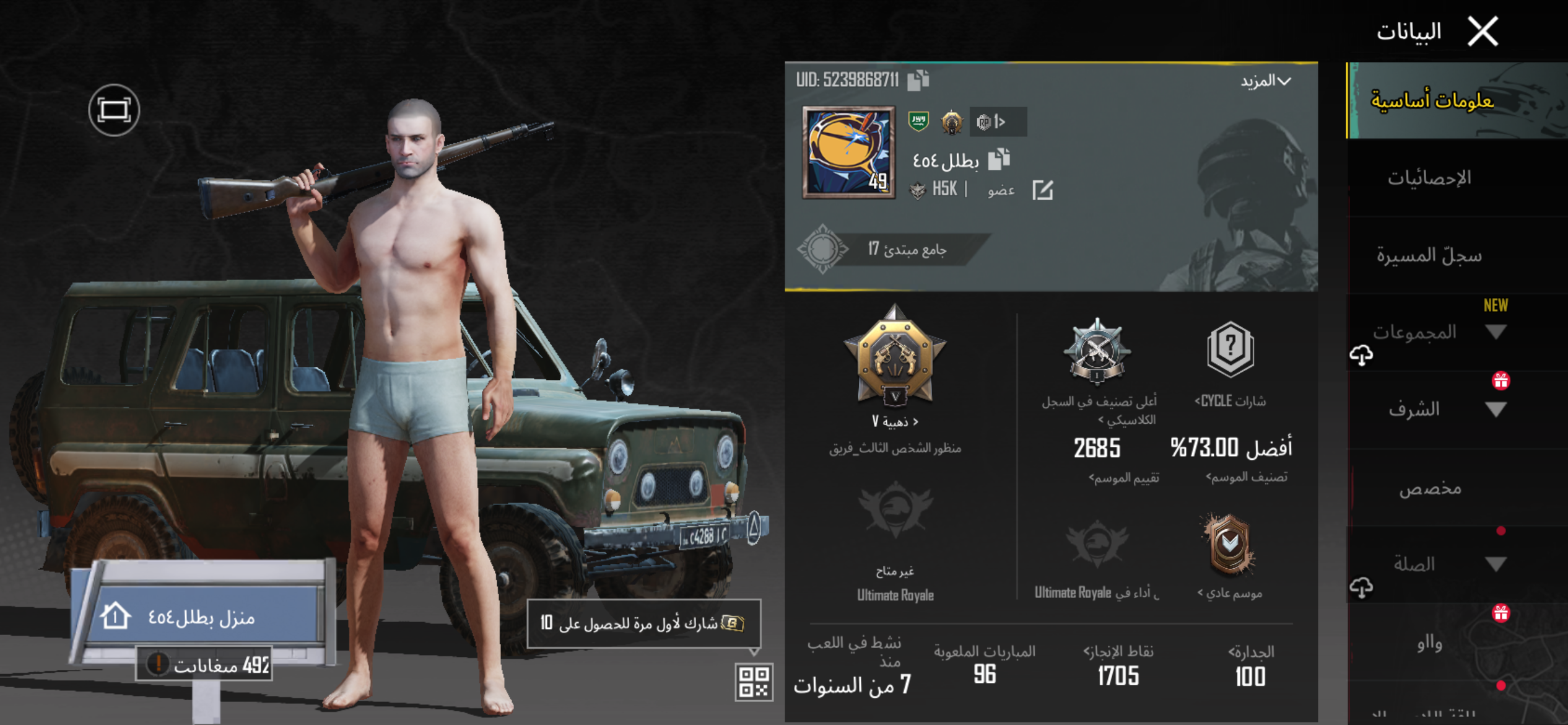 حتى نوادر مشحونه من الخامس ✅ - ليڤل75 ⚜️ ميثك49 🦺 - فيس بنت قصتين شعر والدقن ***** - 11 اسلحه...