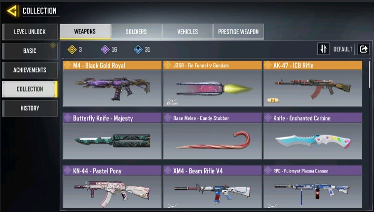 لفل: 398 الرانك: محترف المحتويات: اكثر من 10 اسلحه مذهبه والسكاكين اغلبها الماس M4 ذهبي ا...
