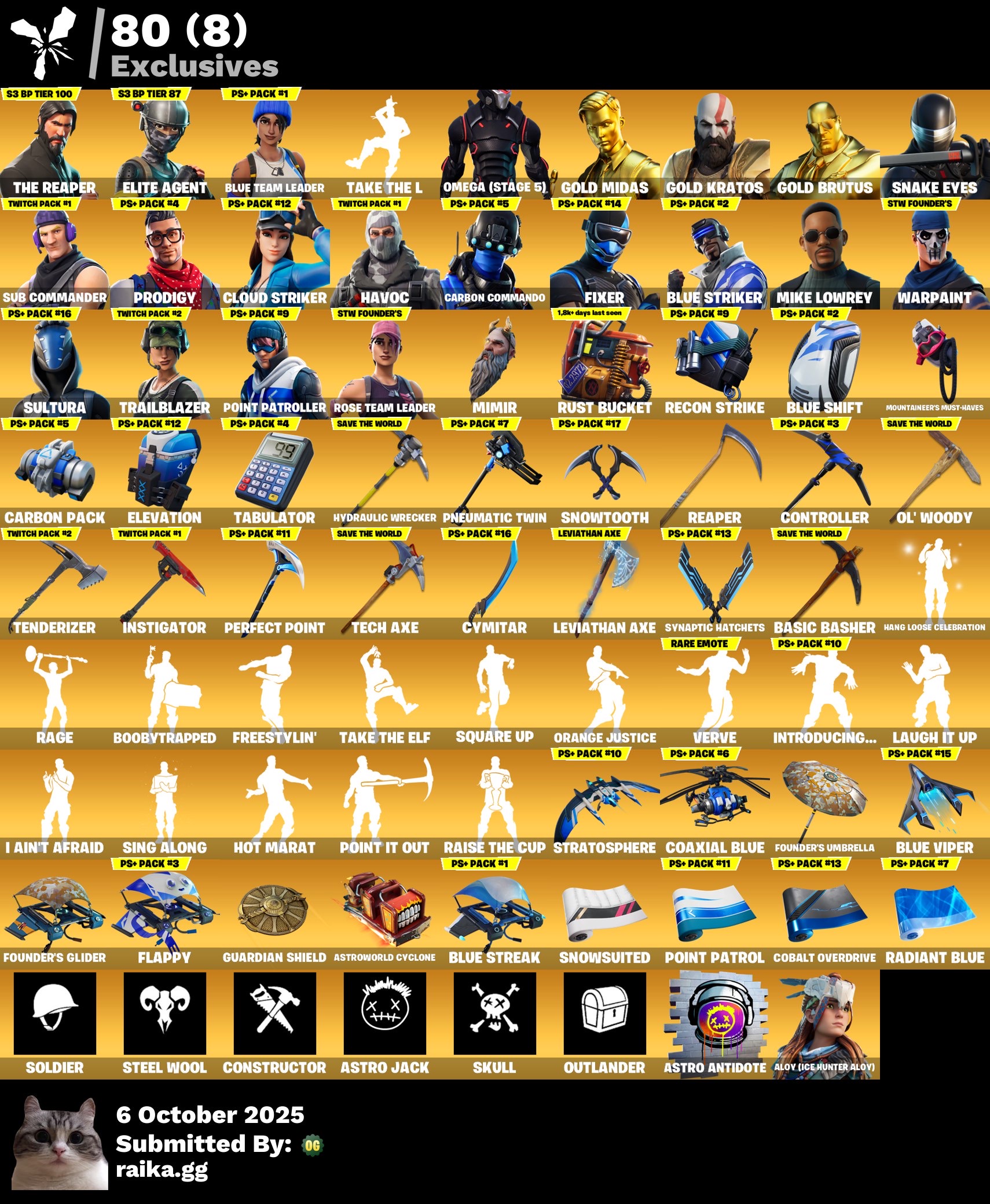 - حساب فورت نايت 🔥 - ابك اساسي ✅ يربط سوني 🎮 - رقصه تيك ذا ل - سيزن ٣ - سكن جريتوس - اكس جريتوس - طور الزومبي القديم - حزم التويتش - سكنات السوني القديمه - رقصه ترافيسكوت - رقصات نادره كثير - حزم نادره - السكنات : 190 - الاكسات : 161 - الرقصات : 137 - الحقائب : 181