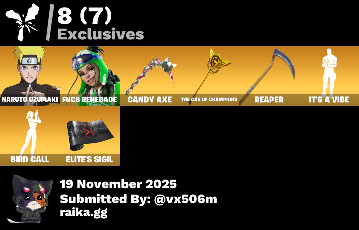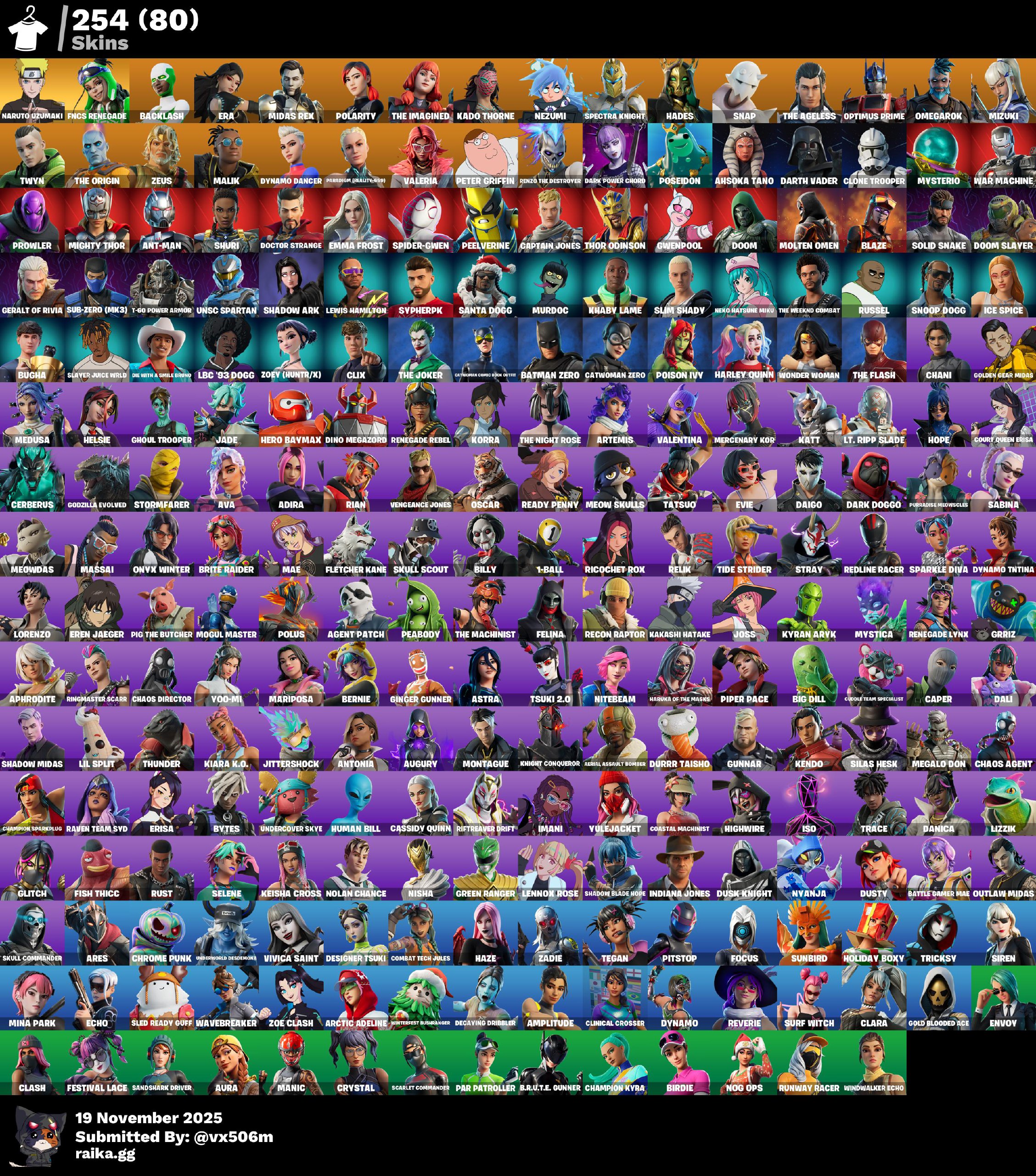 [PC] 254 skins | ناروتو أوزوماكي | متمردة FNCS | باكلاش | العهد | ريكس مايداس | المستقطبة | المتخيلة | كادو ثورن | نيزومي | فارسة سبكترا | هاديس | 300 VB
