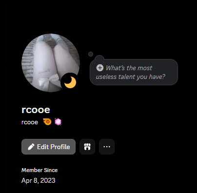 الحساب ما شاء الله ولا غلطه الشاره قبل الاخيره بتطور ماكس يوم 2 من شهر 3 (مارس) السنة هذي يعني بعد اسبوعين و 3 ايام الحساب ما عليه اي تحذيرات وكذلك يوزر مميز خماسي على سطر مقتبس من اسم ركون والحساب بدون شارة كويست ولا اورب *حاليا نادر تحصل حسابات مافيها اورب ولا كويست* والي يرفع من قيمته والحساب مع ايميله الاساسي ومفعل نيترو 6 شهور وفيه نيترو بيكمل معك لين 9 شهور ثم تقدر تشحنه ويكمل معك لين سنه وطالع اي استفسارات تكتب في التعليقات .