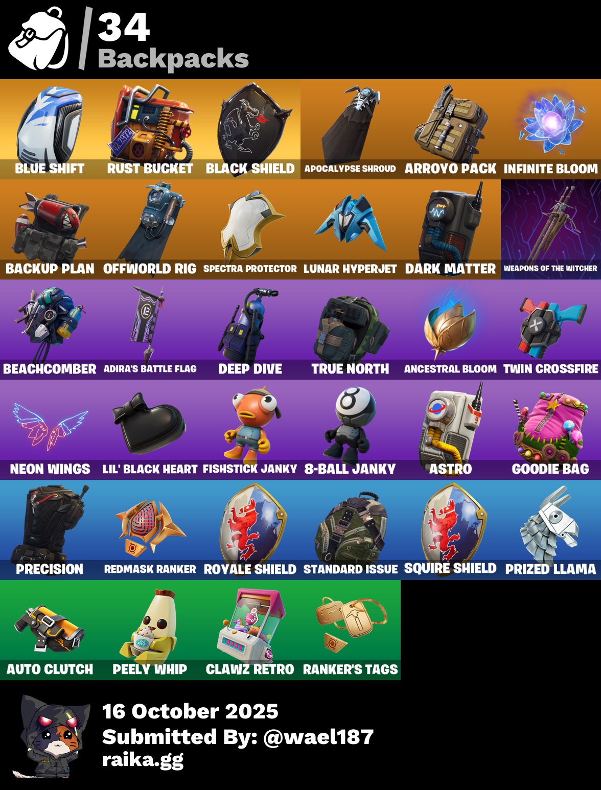 الحساب فيه كود ١٦ وفيه العاب ثانيه وفيه في فورت107 سكن ، 128 اكس ، 133 مضله ، 157 شنطه ، 800 فيبوكس...