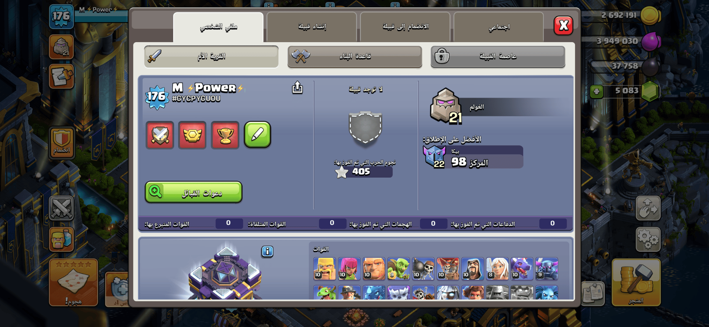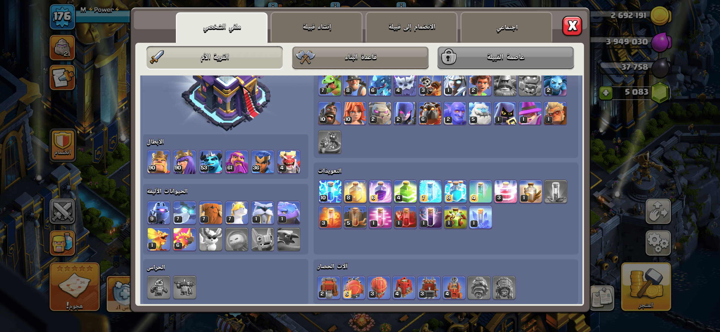 الحساب توه متطور للتاون ١٢ كان ماكس ١١ بكل شي الملوك والمعمل وكل شي الحساب استعمالي الشخصي
