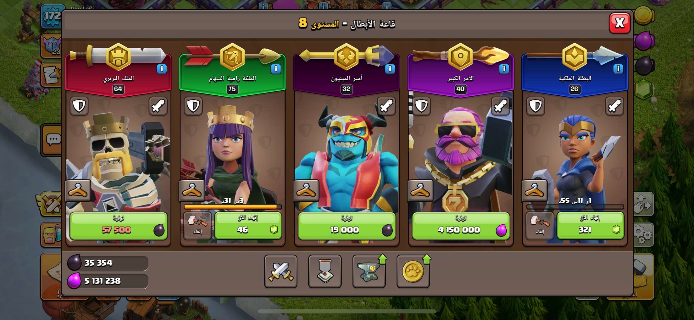الحساب مو ماكس الملكه 70 الملك 66 الامر 40 البطله الملكيه 8 تتطور للفل 9 السور ناقص 203ويصير ما...