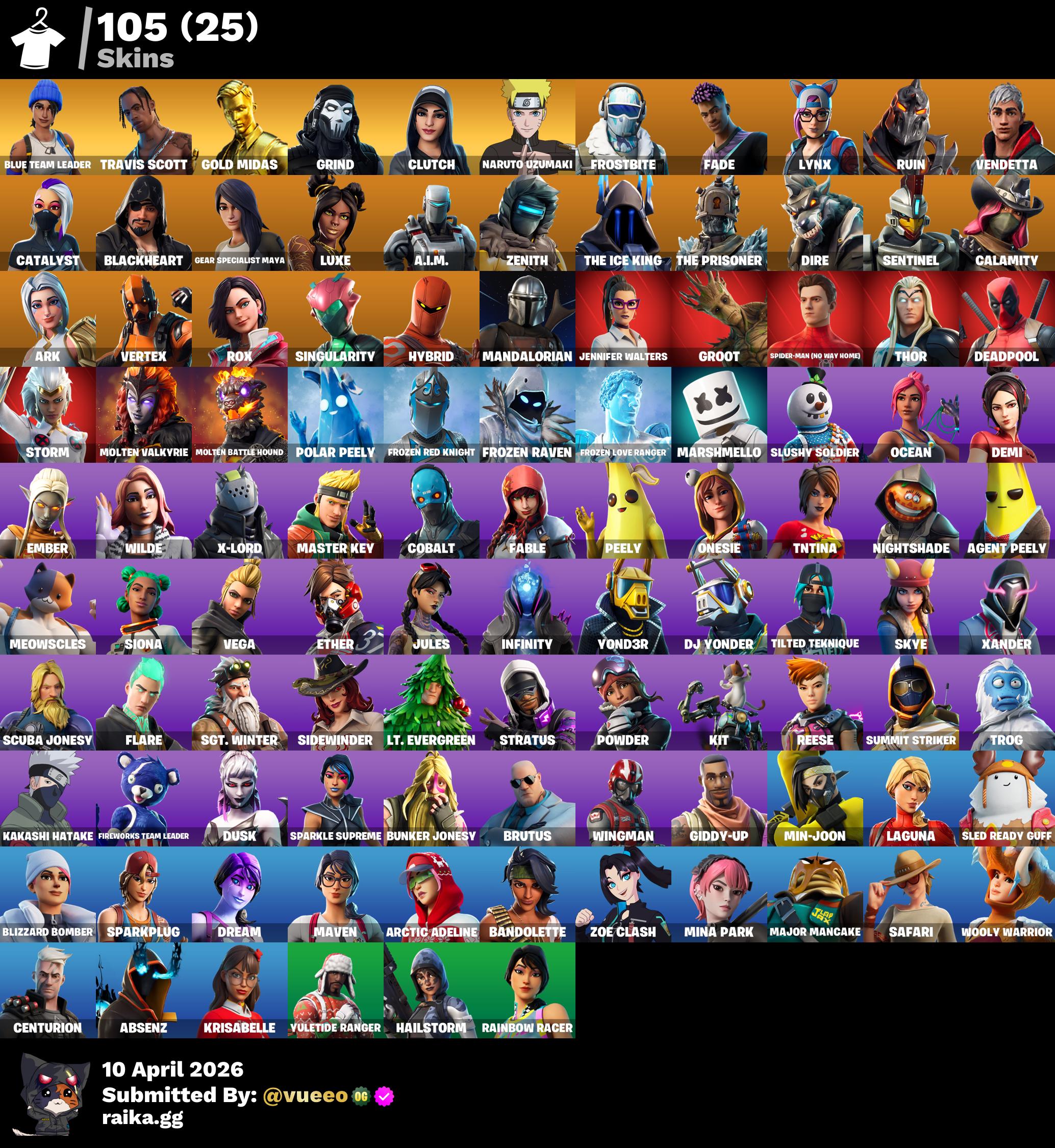حساب فورتنايت صيده اكثر من 170 سكن وفيه اكس كثير وخرافي ورقصات كمان كثير وفيه الحساب 300 فيبوكس وامو...