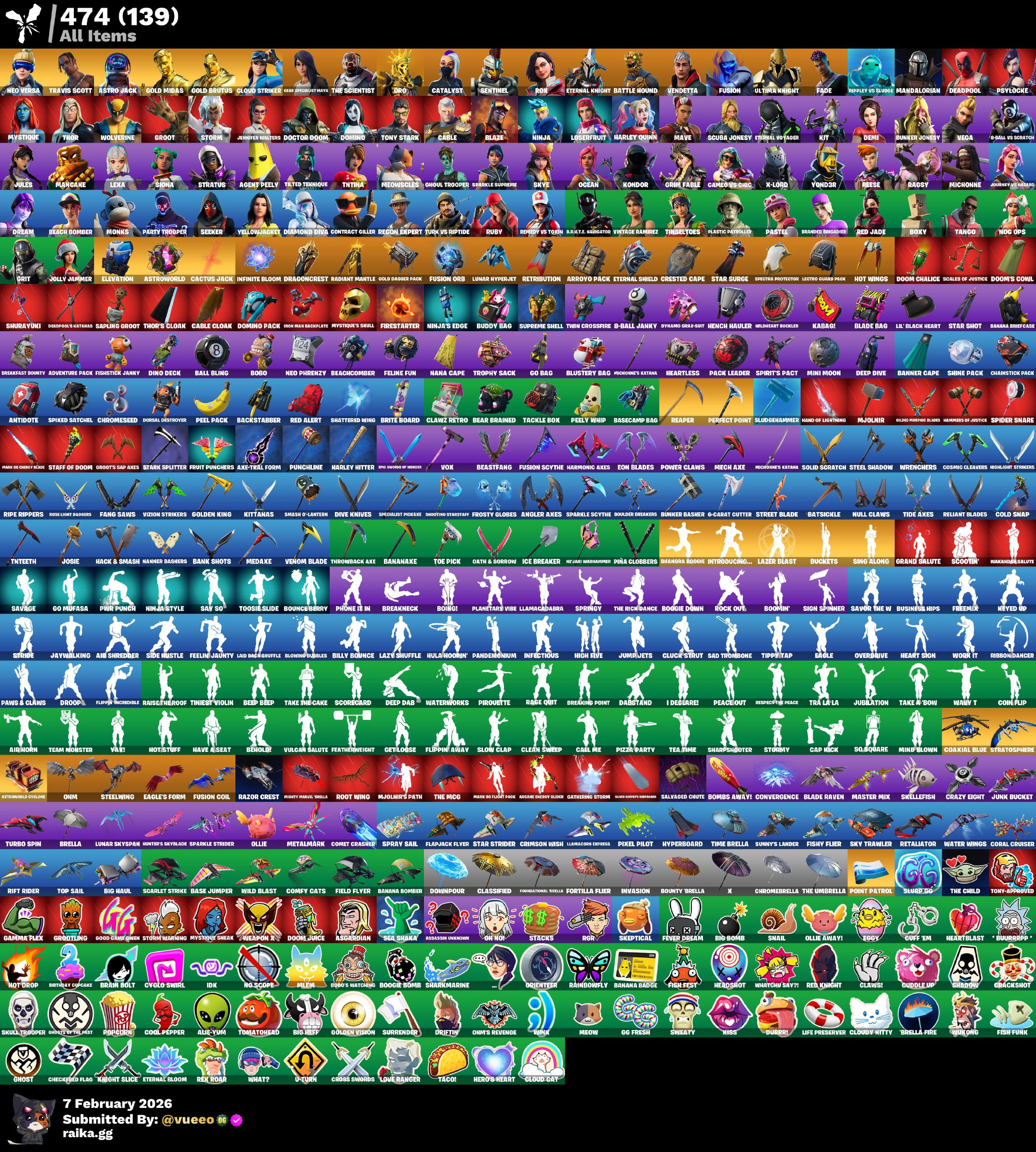 حساب نادر وفيه رقصات نادره وفيه سمكه البطوله وكرة القدم الامريكيه وفيه طور الزومبي يعني فيبوكس لا نه...